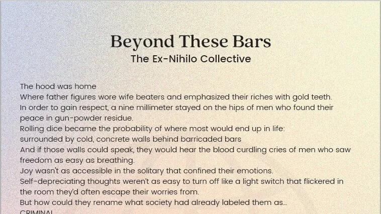 The keynote speaker was Gloria Umanah, spoken-word artist and executive director of the Ex-Nihilo Collective. She performed an original spoken-word piece titled “Beyond These Bars” that powerfully portrays the desperation and hope the incarcerated community experiences.
